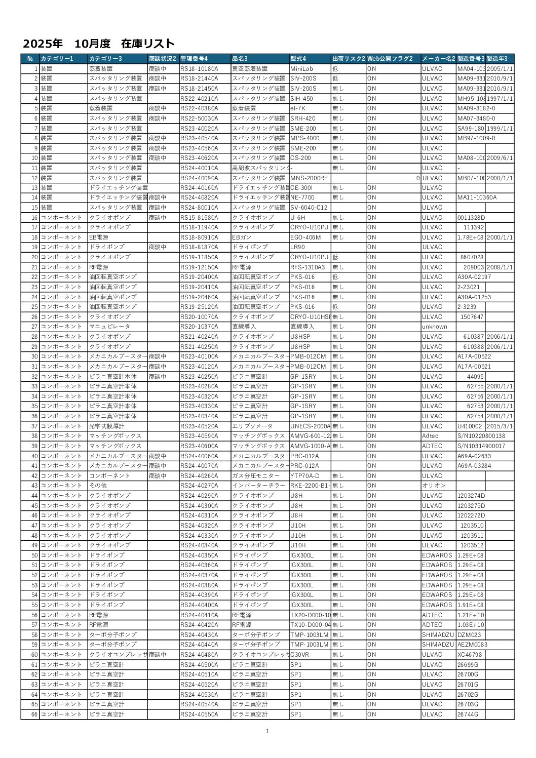 中古在庫品リスト2025年10月号が発行されました 中古品情報 投稿日| 2025.10.6 中古在庫品リストの2025年10月号が発行されました。 各種真空機器から関連製品まで数多く掲載されております。 ご要望により改造なども承ります。 お気軽にフォームからお問い合わせください。 PDFで閲覧する
