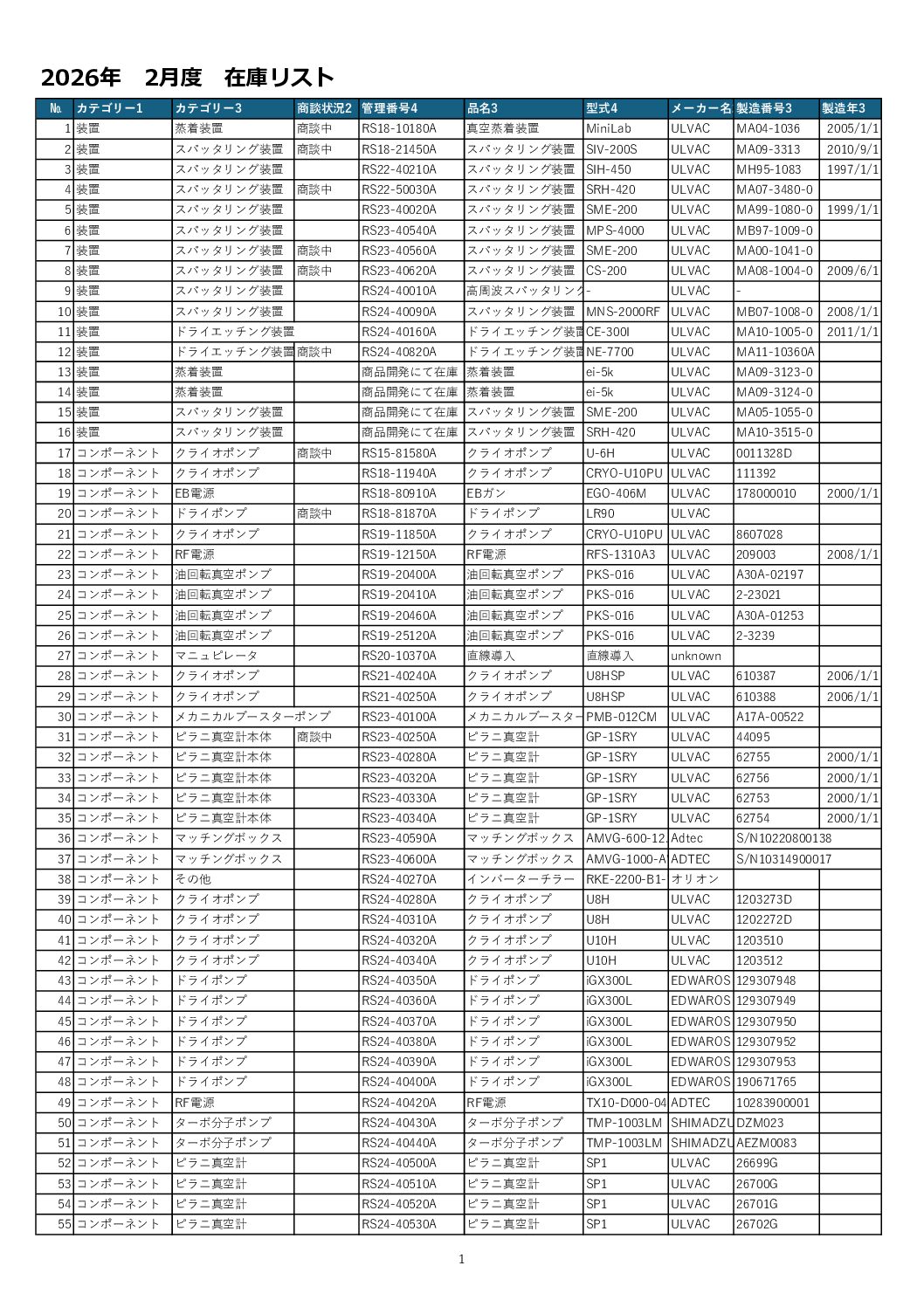中古在庫品リストの2026年2月号が発行されました 中古品情報 投稿日| 2026.2.6 中古在庫品リストの2026年2月号が発行されました。 各種真空機器から関連製品まで数多く掲載されております。 ご要望により改造なども承ります。 お気軽にフォームからお問い合わせください。 PDFで閲覧する