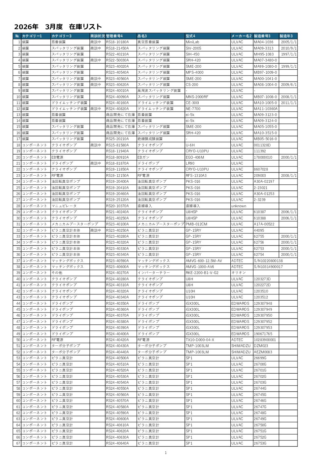 中古在庫品リストの2026年3月号が発行されました。 中古品情報 投稿日| 2026.3.5 中古在庫品リストの2026年3月号が発行されました。 各種真空機器から関連製品まで数多く掲載されております。 ご要望により改造なども承ります。 お気軽にフォームからお問い合わせください。 PDFで閲覧する